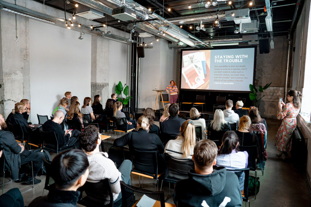 In the afternoon, Oona Tikkaoja, sculptor and lecturer at Humak University of Applied Sciences, delivered the keynote “Making kin with materials”, reflecting on artistic approaches to material relationships and sustainability.
